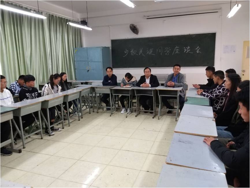 10月17日上午,我院學(xué)工部在院長(zhǎng)倪雨的帶領(lǐng)下,來到綿竹校區(qū),聽取我院近期學(xué)生管理工作匯報(bào),檢查教學(xué)工作。同時(shí),在教學(xué)樓336召開少數(shù)民族學(xué)生座談會(huì),了解少數(shù)民族學(xué)生在校的學(xué)習(xí)、生活情況。2018級(jí)新入校的28名少數(shù)民族學(xué)生參加座談會(huì)。