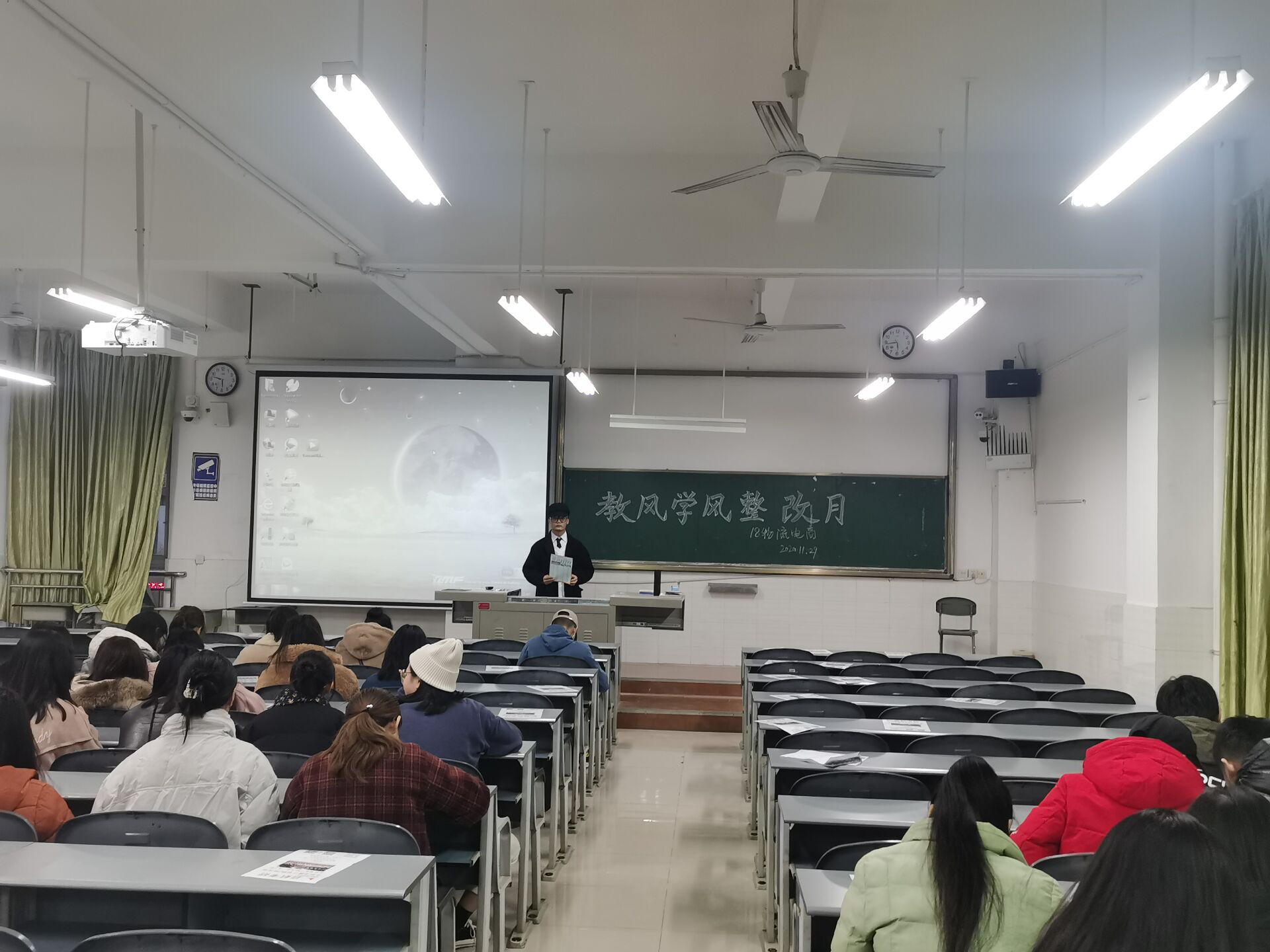 從12月1日開始,四川工業(yè)科技學院將開展教風學風整改月活動。教風學風是一所學校的靈魂,是全體師生在工作、學習和生活中所表現(xiàn)出來的共同的精神風貌。良好的教風學風是校園精神文明的集中體現(xiàn),教風學風建設(shè)是校園精神文明建設(shè)的至關(guān)重要內(nèi)容。為響應(yīng)學校號召,2020年11月29日晚,管理學院各行政班級于教學樓開展“教風學風整改”主題班會,通過本次班會,讓學生養(yǎng)成良好的學習作風與品德。