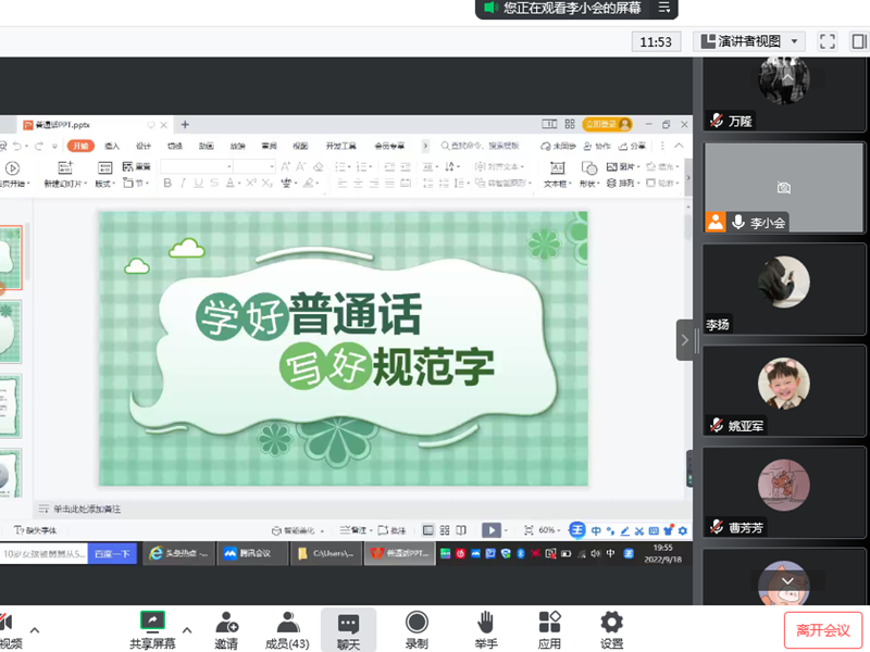2.學(xué)工部高度重視推普周工作,積極制定推普計(jì)劃并召集各二級學(xué)院學(xué)工負(fù)責(zé)人召開了推普工作動(dòng)員會(huì),倡議全校各班開展以“推廣普通話,喜迎二十大”為主題的班會(huì)教育活動(dòng),并要求在班會(huì)中,播放大學(xué)生語言文字推廣中心的師生拍攝的推普周宣傳視頻。這一舉措極大的加強(qiáng)了推普周的宣傳力度,讓說普通話、寫規(guī)范字深入人心。
