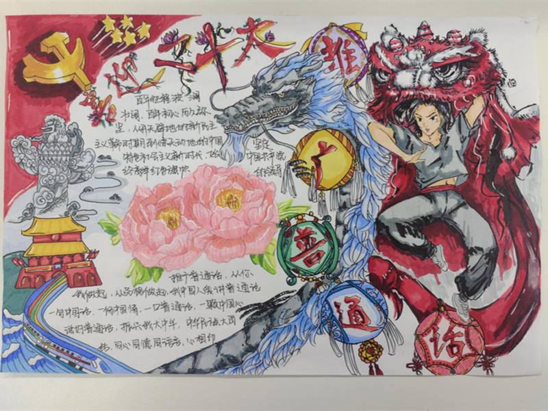 為使推普活動(dòng)全面、深入開展起來,學(xué)校教學(xué)樓貼上了宣傳標(biāo)識牌、擺放了“推普”展板、制作了“推普”黑板報(bào)。學(xué)校還充分利用微信公眾號、微博、官網(wǎng)、抖音等新媒體開展活動(dòng),讓本次“推普”宣傳活動(dòng)在我校全方位覆蓋。