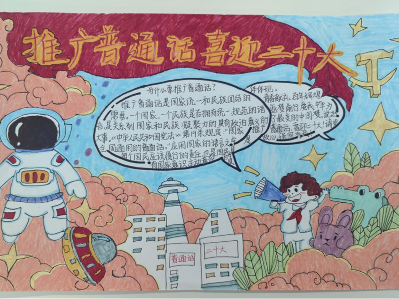 為全面貫徹國家語言文字法律法規(guī)和方針政策,積極引導(dǎo)全校師生樹立科學(xué)的語言觀,增強(qiáng)師生說好普通話,寫好規(guī)范字的意識,提高師生國家通用語言文字的應(yīng)用能力,積極營造喜迎黨的二十大勝利召開的濃厚氛圍,全國第25屆推廣普通話宣傳周期間,我校開展了以“推廣普通話 喜迎二十大”為主題的推普周系列活動(dòng),讓“說普通話,寫規(guī)范字”在校園內(nèi)蔚然成風(fēng)。