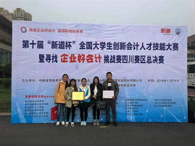 19日,由中國高等教育學會高等財經教育分會主辦,新道科技股份有限公司、四川財經職業(yè)學院承辦的第十屆“新道杯”全國大學生創(chuàng)新會計人才技能大賽暨尋找企業(yè)好會計挑戰(zhàn)賽四川賽區(qū)決賽在四川財經職業(yè)學院落下帷幕。財經學院會計電算化14級茍梅操,15級楊曉梅、馮迪、蔣丹四位同學在趙紹雄、鄭建兩位老師的指導下榮獲團體三等獎。