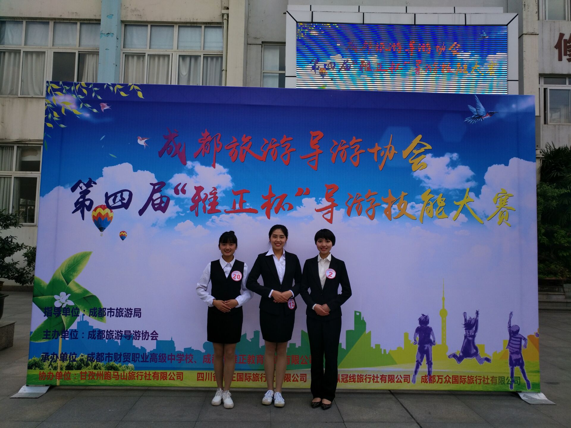 2017年4月22日由成都旅游導(dǎo)游協(xié)會(huì)主辦的第四屆“雅正杯”導(dǎo)游技能大賽在四川財(cái)貿(mào)職業(yè)高中隆重舉行。我院通過層層選拔,最終選派3名選手在旅游管理教研室主任溫興燕老師的帶領(lǐng)下參加了此次比賽。大賽分為普通話講解(喬瀟蝶、曹慧-中文組)與英語講解(黃榮-英文組)兩個(gè)系列。