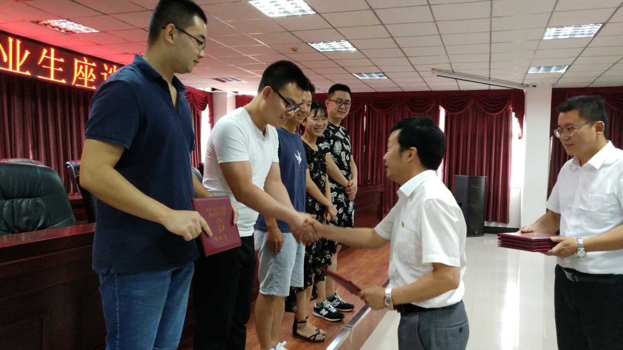 在座談會(huì)上各位領(lǐng)導(dǎo)為畢業(yè)生代表頒發(fā)了畢業(yè)證書并合影留念。