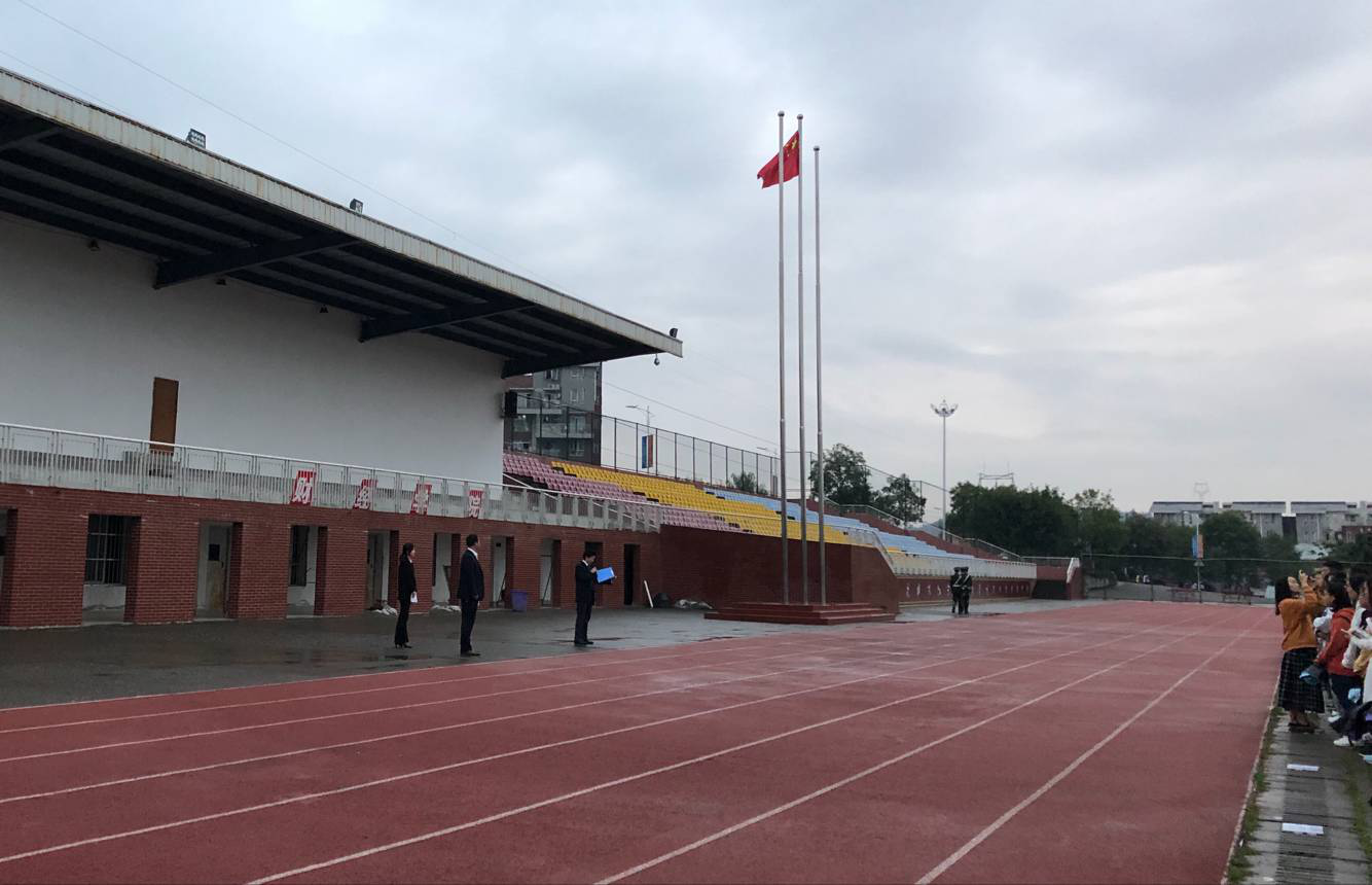 七點(diǎn)整,升旗儀式正式開始。雖然天公不作美,但是同學(xué)們依然滿懷激情,注視著護(hù)旗手邁著鏗鏘有力的步伐來到國旗臺(tái)下,全場(chǎng)肅立。在激昂的《義勇軍進(jìn)行曲》中,鮮艷的五星紅旗徐徐展開,飄揚(yáng)在學(xué)校的上空。