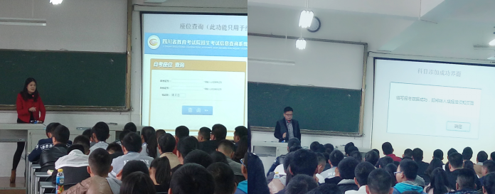 2015年11月4日13時(shí),在四川工業(yè)科技學(xué)院羅江校區(qū)毓秀樓305教室開展了2015級(jí)自考新生日常管理及網(wǎng)上報(bào)名培訓(xùn)會(huì)。會(huì)議期間,繼續(xù)教育學(xué)院陳鵬羽老師首先對(duì)我校羅江校區(qū)開設(shè)的四個(gè)自考本科專業(yè)的主考院校、統(tǒng)考課程和省考課程進(jìn)行了詳細(xì)介紹和講解,針對(duì)參會(huì)學(xué)生提出的問題進(jìn)行耐心的解答。隨后繼續(xù)教育學(xué)院邱華老師對(duì)自考考試課程網(wǎng)上報(bào)名步驟進(jìn)行了詳細(xì)的講解,并對(duì)報(bào)名過程中需要注意的事項(xiàng)和容易操作錯(cuò)誤的關(guān)鍵步驟進(jìn)行了反復(fù)強(qiáng)調(diào)。
