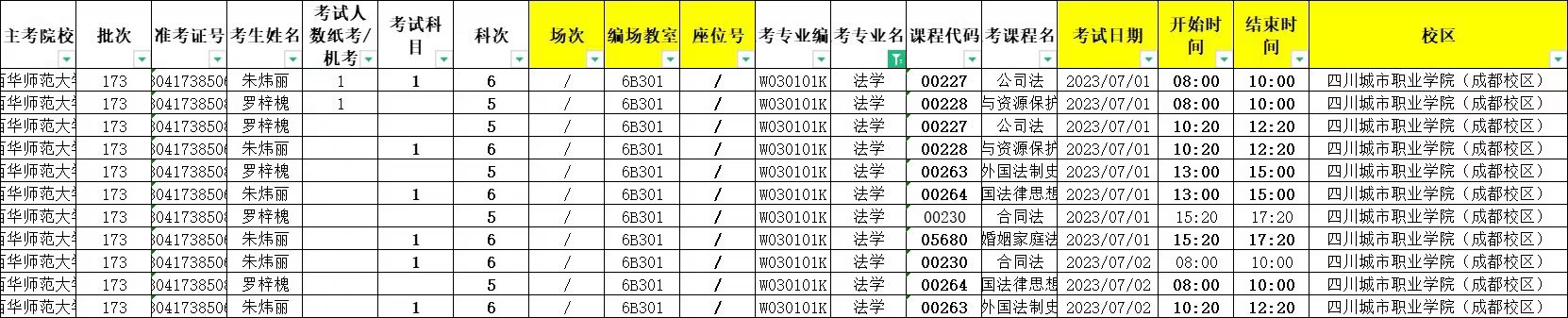 西華師范大學(xué)(城市職院)23.4次考試安排