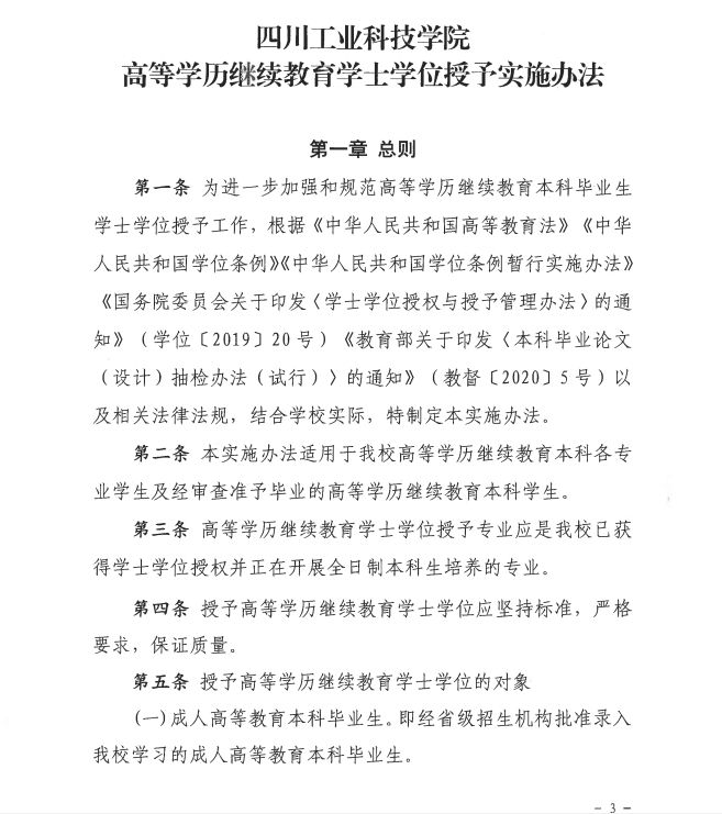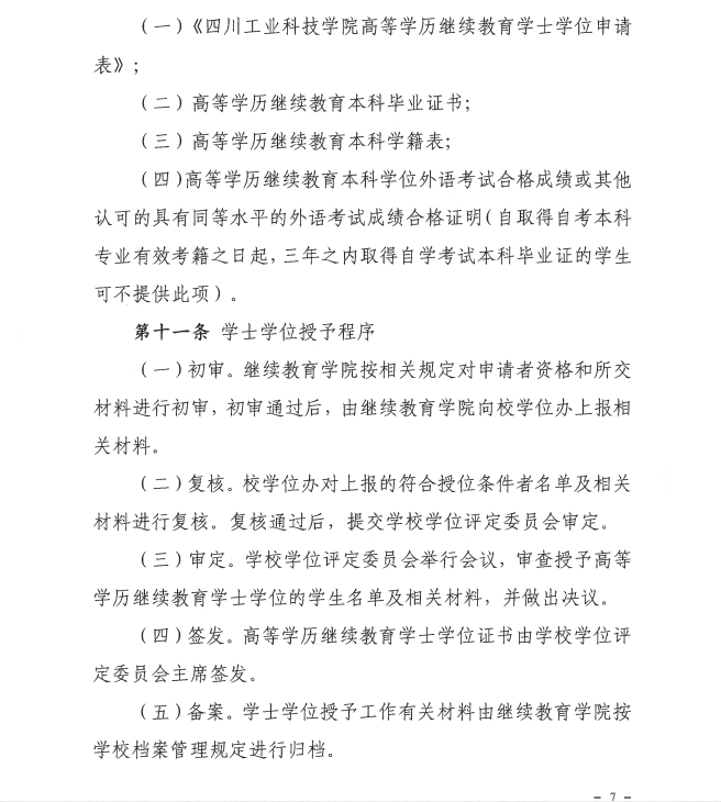 四川工業(yè)科技學(xué)院高等學(xué)歷繼續(xù)教育學(xué)士學(xué)位授予實施辦法