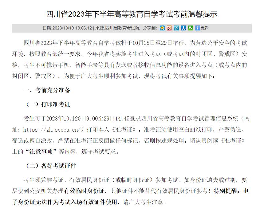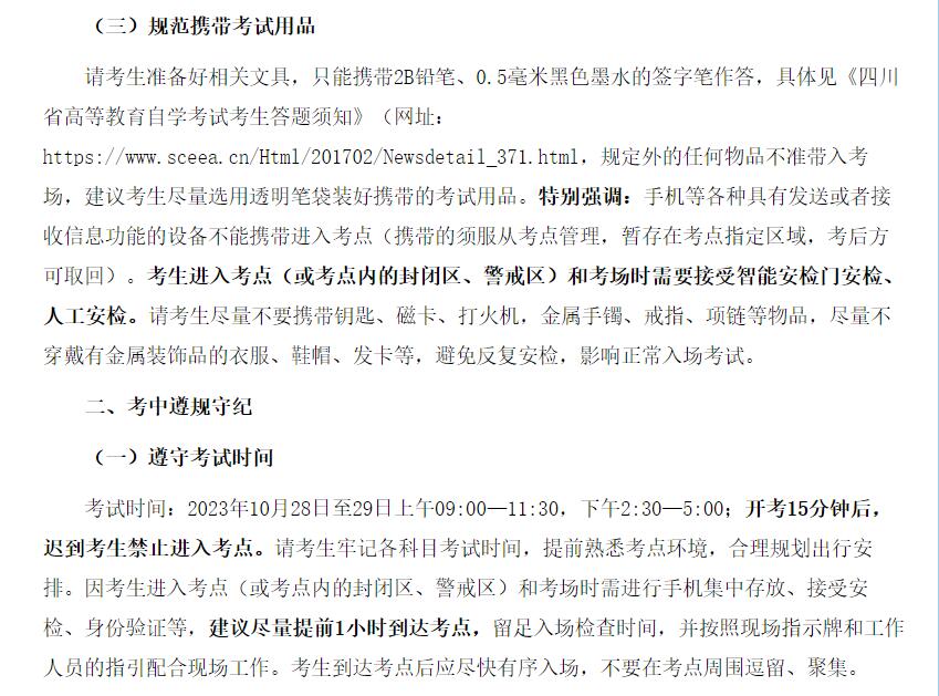 四川省2023年下半年高等教育自學(xué)考試考前溫馨提示