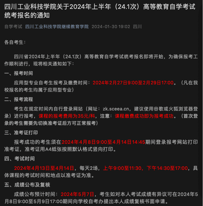 2024年上半年(24.1次)高等教育自學(xué)考試統(tǒng)考報名通知
