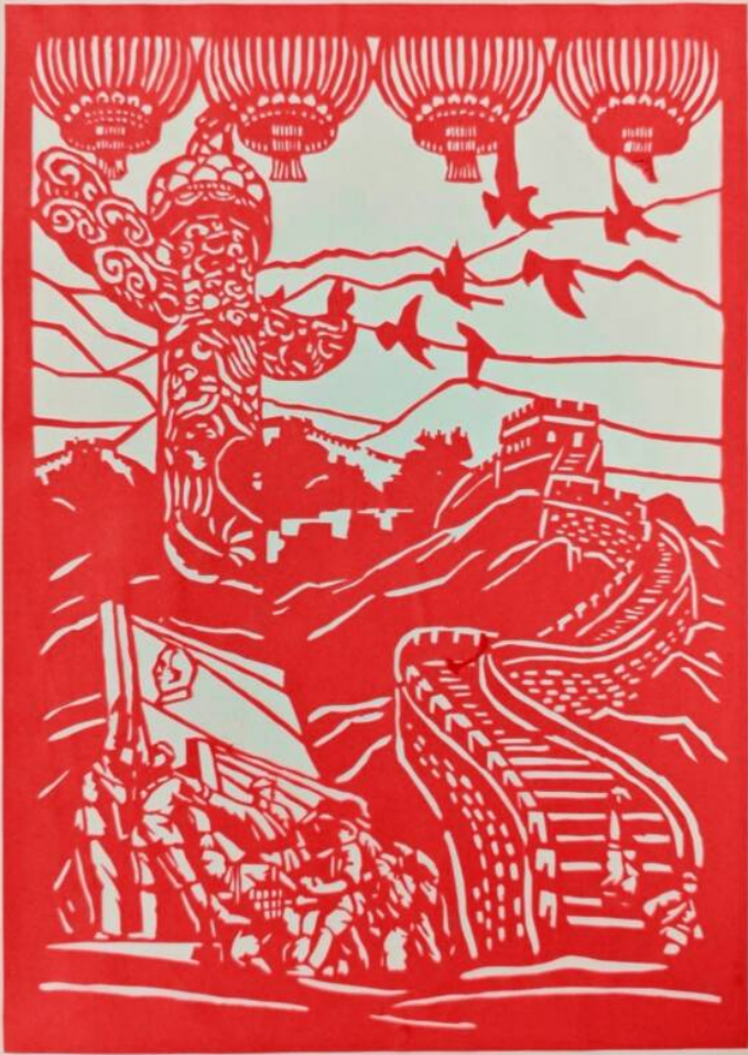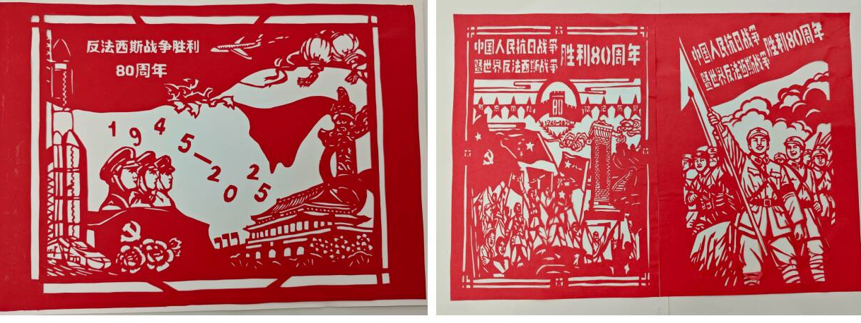 為激活革命文化的育人價值,學(xué)院美育教研室充分發(fā)揮教學(xué)指導(dǎo)作用,帶領(lǐng)課程團(tuán)隊創(chuàng)新教學(xué)形式。教研室組織挖掘抗戰(zhàn)歷史中的經(jīng)典素材,將英雄事跡、戰(zhàn)役場景等轉(zhuǎn)化為可操作的剪紙創(chuàng)作內(nèi)容,引導(dǎo)學(xué)生以傳統(tǒng)剪紙技藝為媒介,通過剪刻、構(gòu)圖等實踐環(huán)節(jié),沉浸式再現(xiàn)抗戰(zhàn)歷程,深刻領(lǐng)悟抗戰(zhàn)精神的時代內(nèi)涵。這一教學(xué)設(shè)計既幫助學(xué)生夯實了學(xué)前教育崗位所需的手工教學(xué)技能,又推動愛國情懷從“認(rèn)知”向“踐行”轉(zhuǎn)化,實現(xiàn)了專業(yè)能力與思政素養(yǎng)的同步提升。