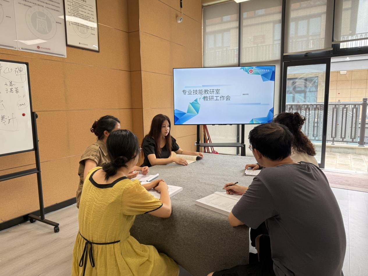 9月9日,教育學(xué)院專業(yè)技能教研室在學(xué)院實(shí)訓(xùn)中心A2-1書法實(shí)訓(xùn)室組織開展課程建設(shè)專題研討活動(dòng)?;顒?dòng)由教研室主任劉琴主持,學(xué)院院長助理李長福、專職教師尹茜、張蕊及兼職教師梅芮共同參與。