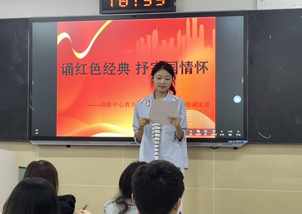 本次比賽特邀教育學(xué)院劉琴、張亞楠老師擔(dān)任評委,從語音規(guī)范、情感表達、舞臺表現(xiàn)等維度進行專業(yè)評判。選手們或慷慨激昂,或深情婉轉(zhuǎn),使《詩經(jīng)》的典雅與《囚歌》的鐵骨在舞臺上交相輝映,讓紅色精神通過標(biāo)準(zhǔn)語言直抵人心。