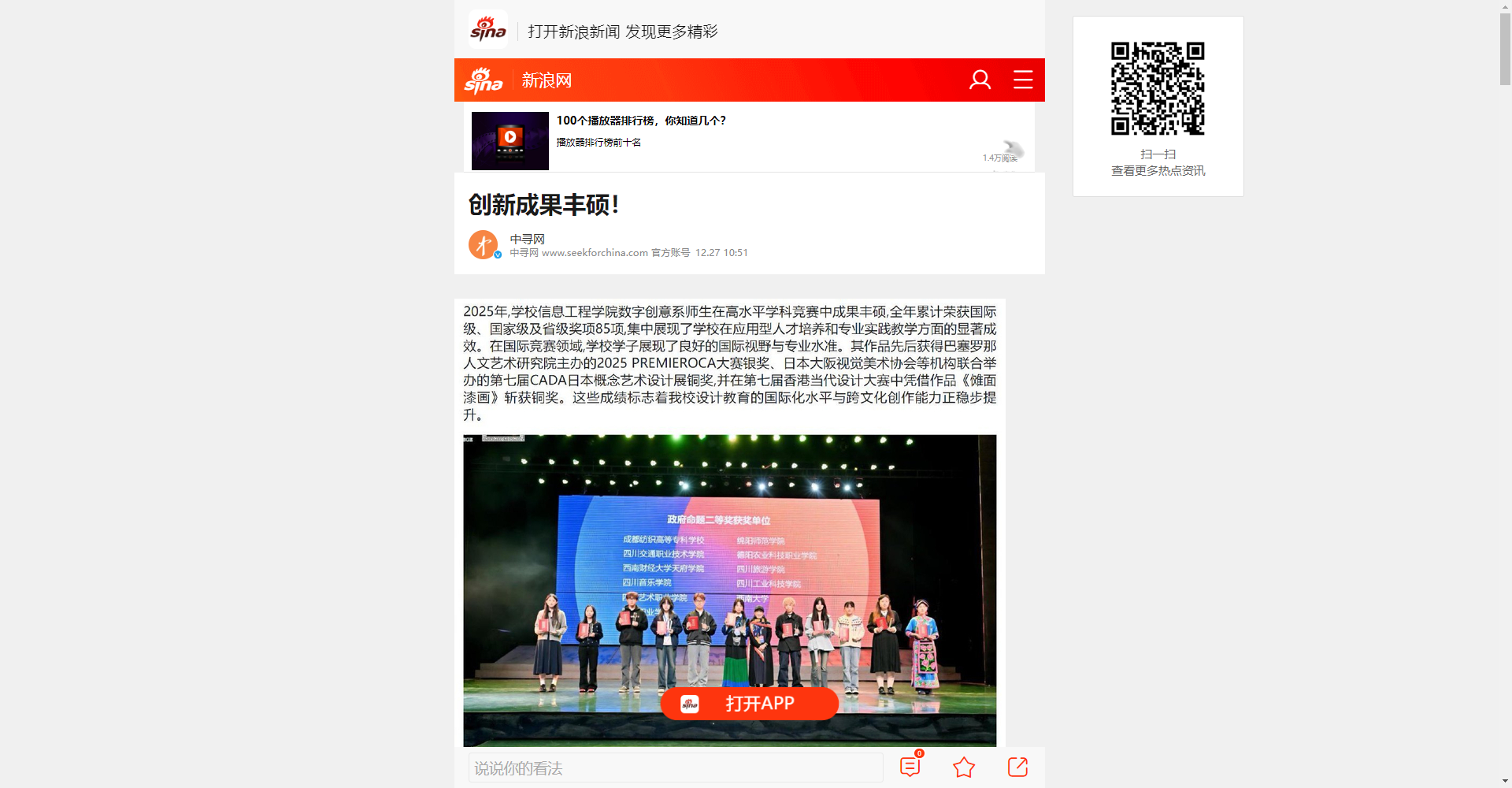 2025年,學(xué)校信息工程學(xué)院數(shù)字創(chuàng)意系師生在高水平學(xué)科競(jìng)賽中成果豐碩,全年累計(jì)榮獲國(guó)際級(jí)、國(guó)家級(jí)及省級(jí)獎(jiǎng)項(xiàng)85項(xiàng),集中展現(xiàn)了學(xué)校在應(yīng)用型人才培養(yǎng)和專業(yè)實(shí)踐教學(xué)方面的顯著成效。