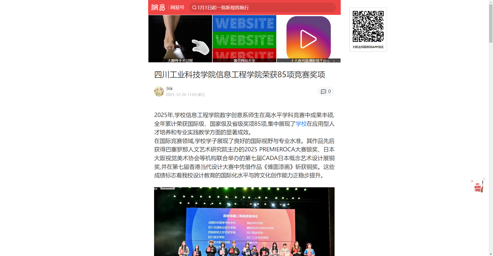 2025年,學(xué)校信息工程學(xué)院數(shù)字創(chuàng)意系師生在高水平學(xué)科競賽中成果豐碩,全年累計(jì)榮獲國際級、國家級及省級獎(jiǎng)項(xiàng)85項(xiàng),集中展現(xiàn)了學(xué)校在應(yīng)用型人才培養(yǎng)和專業(yè)實(shí)踐教學(xué)方面的顯著成效。