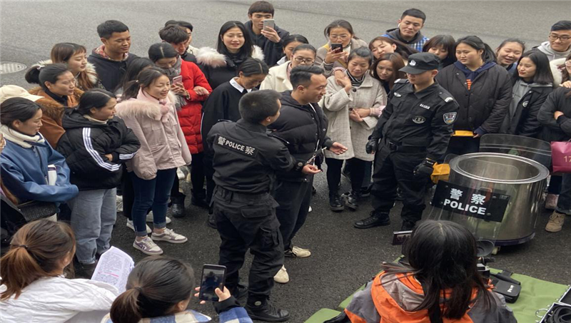 在輔導(dǎo)員張航老師、科任教師李長福、張蕊老師的陪同下,18級法律文秘全體學(xué)生來到羅江區(qū)法院。接待學(xué)院師生的羅江區(qū)法院辦公室寇主任首先帶領(lǐng)同學(xué)們參觀了立案庭,并由立案庭的工作人員仔細講解了立案的具體流程,幫助大家進一步認識訴訟程序中第一個環(huán)節(jié)立案的重要性和必要性。隨后來到了科技法庭,科技法庭里呈現(xiàn)的現(xiàn)代化科技審判設(shè)施和設(shè)備,給同學(xué)們留下很深的印象。緊跟著同學(xué)們來到區(qū)法院的院子,一群司法警察等著為同學(xué)們展示訴訟過程中可能會用到的警械裝備比如:防刺衣、防爆桶、遠距離抗捕鋼叉等。同學(xué)們對這些高科技的警械裝備非常感興趣,積極詢問其用途,使用方法等,其中一名同學(xué)還很榮幸的充當了一次“犯罪嫌疑人”,被戴上了手銬和腳銬。