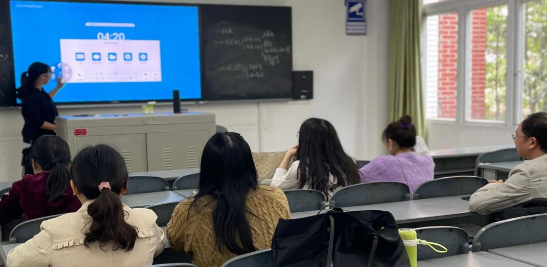 會議中高冬梅主要向教師講解智慧終端使用方法和注意事項。智慧黑板的投入使用可以促進廣大師生將信息化設備真正應用到教學中,教師在課堂中授課更方便,課堂互動性更強,將會大大提高學生的參與度;智慧黑板的使用打破信息化教室都是專用教室的局面,促使學校的每一間教室都建成為智慧教室,實現(xiàn)智慧教室“課堂用、經(jīng)常用、普遍用”的基本目標,實現(xiàn)教學創(chuàng)新。接著高冬梅組織教研室教師進行實際操作,互動培訓。
