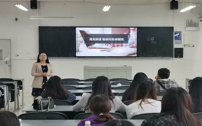9月15日下午,用友新道工作人員于毓秀樓宣講關(guān)于財(cái)務(wù)會(huì)計(jì)的未來發(fā)展趨勢(shì),以及數(shù)據(jù)時(shí)代財(cái)務(wù)技術(shù)的轉(zhuǎn)型。財(cái)經(jīng)學(xué)院19級(jí)專升本和20級(jí)財(cái)務(wù)管理的同學(xué)們到場(chǎng)參加此次宣講。