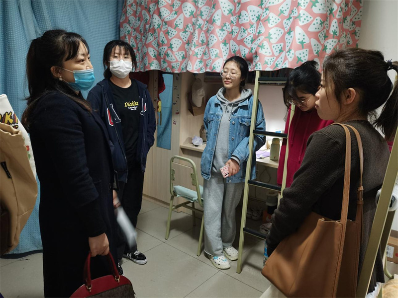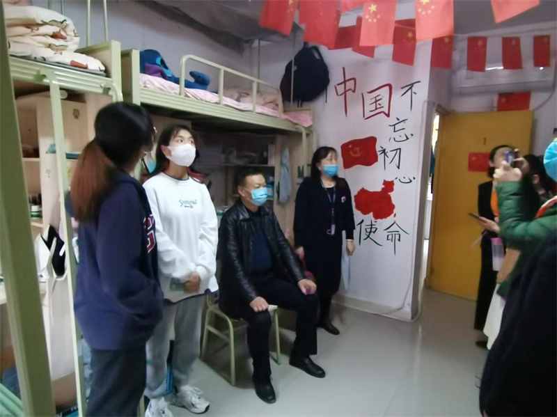 院領(lǐng)導(dǎo)老師們依次走進(jìn)多間宿舍,親切地慰問同學(xué)們的生活和學(xué)習(xí)情況,同時也暖心提醒同學(xué)注意寢室用電安全。也參觀了同學(xué)們的寢室文化建設(shè),讓大家充分利用我們學(xué)前教育的特色,可將繪畫作品、手工作品、書法作品粘貼在墻上,讓寢室文化更加豐富,讓寢室更加有家的感覺。