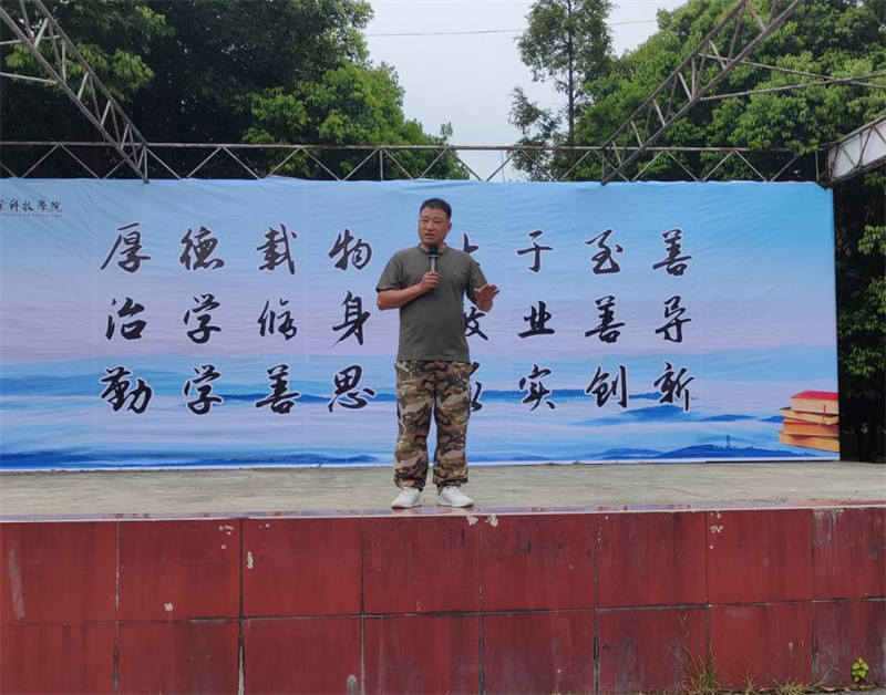 為了提高新入校大學生的安全意識。9月1日,四川工業(yè)科技學院體育與健康學院黨總支副書記魏天強在公寓廣場為2022級軍訓新生講解預防電信詐騙知識。