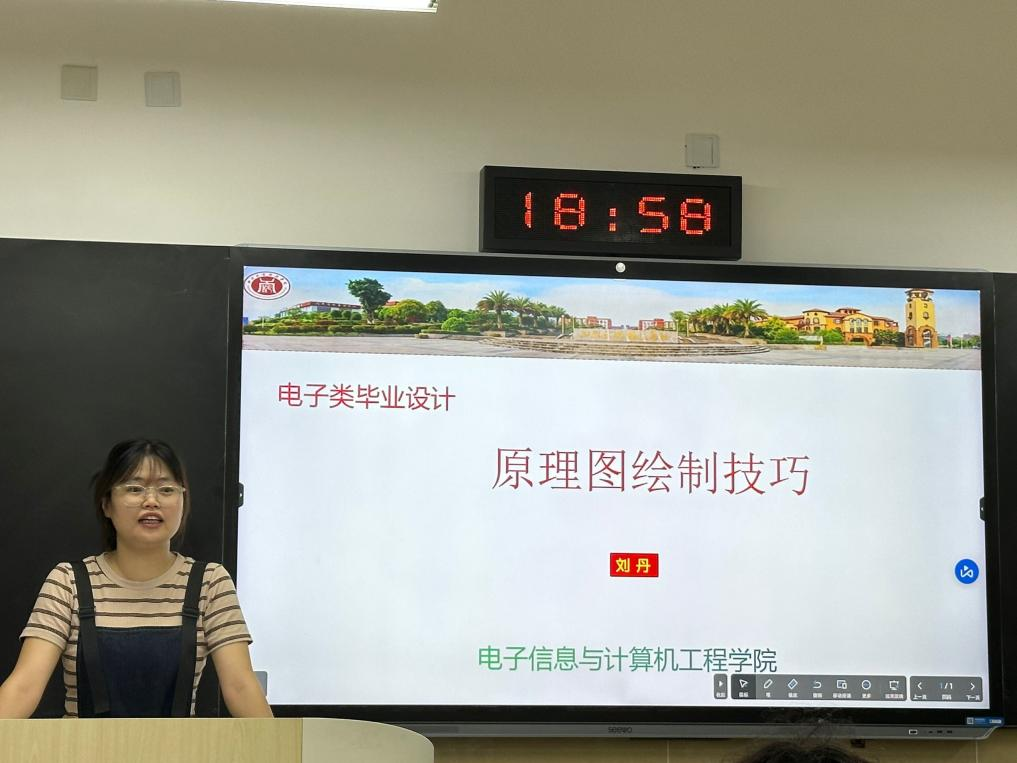 為助力學(xué)院電子類本科學(xué)生更好地開展畢業(yè)設(shè)計工作,提升學(xué)院電子類專業(yè)畢業(yè)生設(shè)計作品的效率,8月1日,學(xué)院電子類專業(yè)教師劉丹開展了關(guān)于“電子類畢業(yè)設(shè)計原理圖繪制技巧”的專題講座。