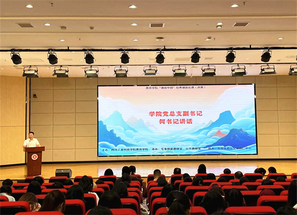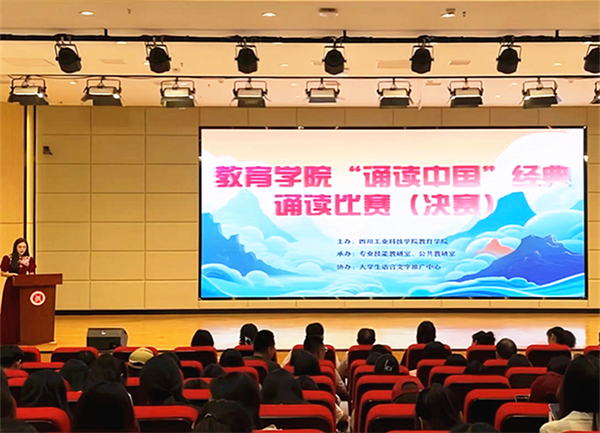5月20日,由四川工業(yè)科技學院教育學院主辦,專業(yè)技能教研室和公共教研室承辦,大學生語言文字推廣中心協(xié)辦的“誦讀中國”經典誦讀大賽決賽在龑江校區(qū)C區(qū)報告廳成功舉辦。教育學院黨總支書記、院長何忠國,教育學院黨總支副書記何彬及教育學院科級以上干部出席比賽,公共教研室主任李印平、小學教研室主任顏富云、學前教研室主任唐丹、藝術教研室主任吉大文、技能教研室教師熊定永副教授擔任評委。