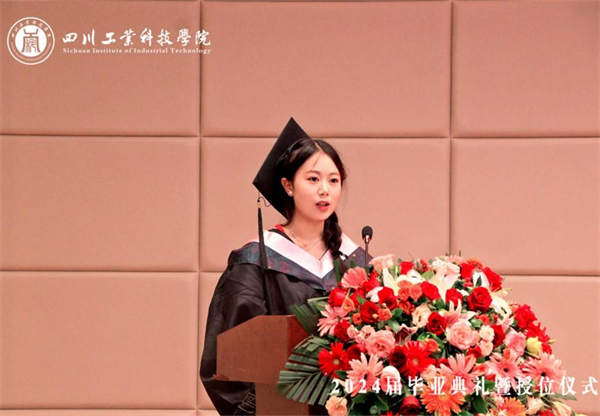 優(yōu)秀畢業(yè)生代表譚境賢發(fā)言。她談到,畢業(yè)也意味著你們學生時代的終結(jié),但并不意味著學習生涯的結(jié)束,未來你們要在生活中學習,在學習中生活。讓時間作證,2024屆全體畢業(yè)生一定會牢記“明德、博學、篤行、創(chuàng)新”的校訓,做尚德之人、有德之人、施德之人,做學識淵博之人,做不懈追求和捍衛(wèi)客觀真理之人,做敢于擔當、敢為人先、勇于創(chuàng)新之人。