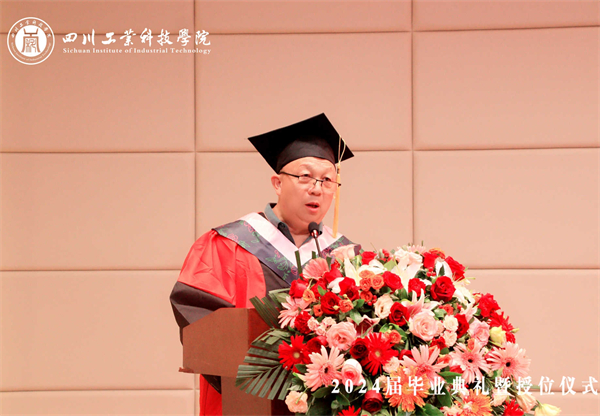 熊清明宣讀《四川工業(yè)科技學院教育學院2024屆本科畢業(yè)生學士學位授予決定》。