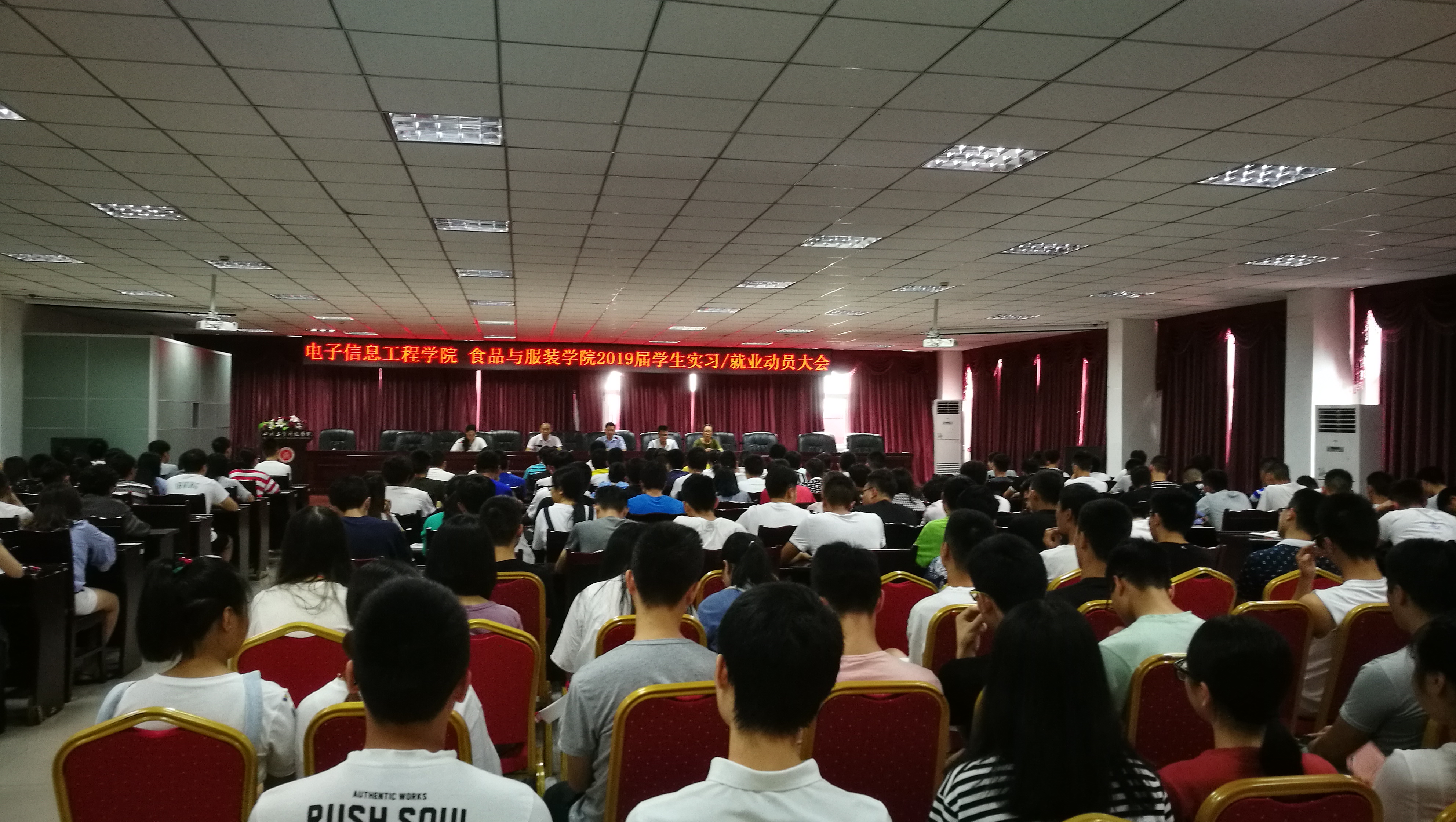 8月2日下午,電子信息工程學(xué)院聯(lián)合食品與服裝學(xué)院于圖書館D-08會議室召開2019屆學(xué)生實習(xí)與就業(yè)動員大會。學(xué)院院長龍厚彥、黨支部書記陳亨貴、學(xué)工辦主任馬娟花、教學(xué)辦副主任劉亞君、培訓(xùn)辦副主任李明出席了本次會議,2019屆全體本專科學(xué)生參加了此次會議。會議由馬娟花主持。