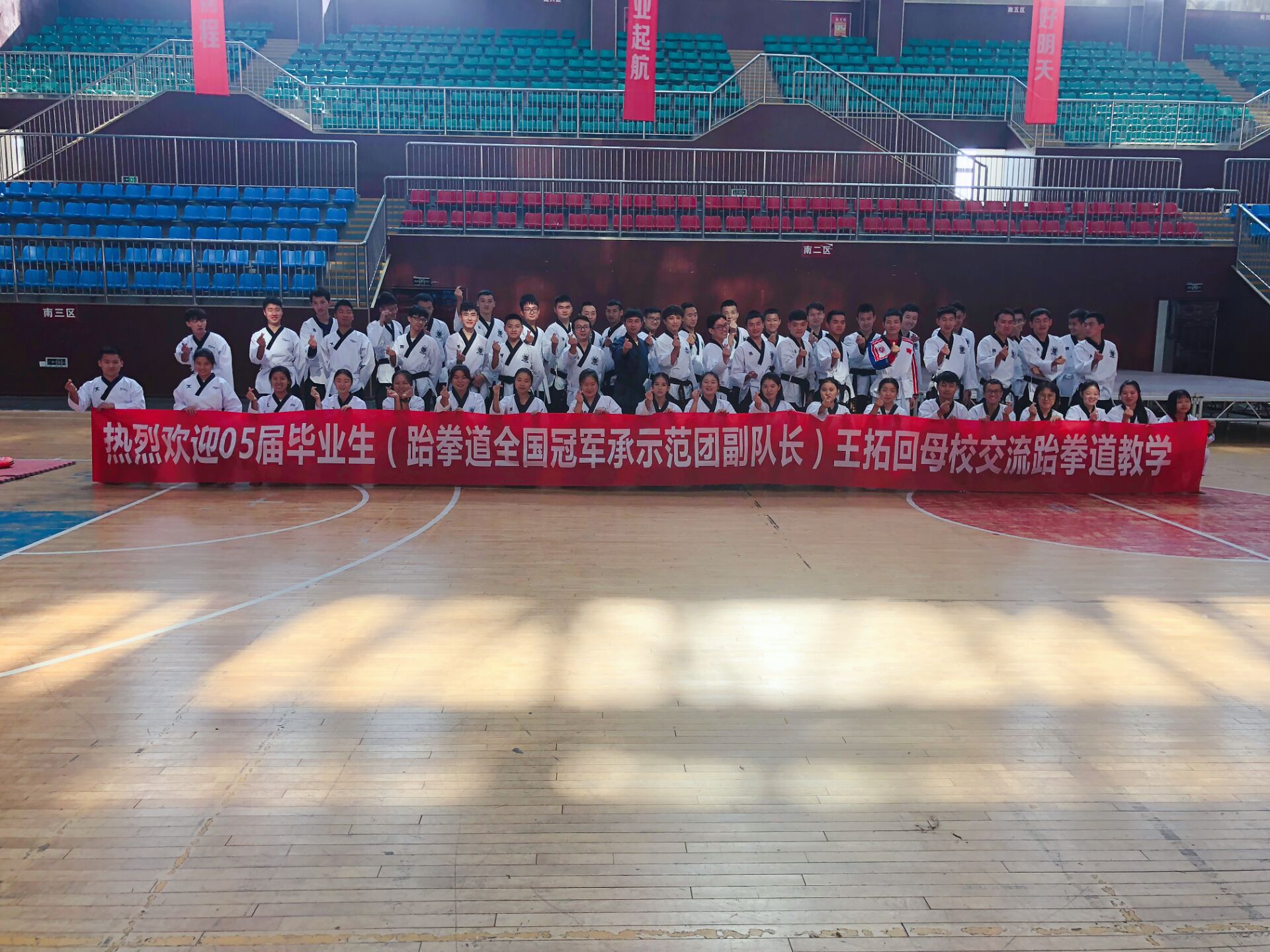 10月30日,我校05屆畢業(yè)生、跆拳道全國冠軍承示范團副團長王拓回母校交流跆拳道教學(xué)。體育學(xué)院院長雷耀方、黨支部書記何忠國以及體育學(xué)院部分老師與王拓進行了交流。