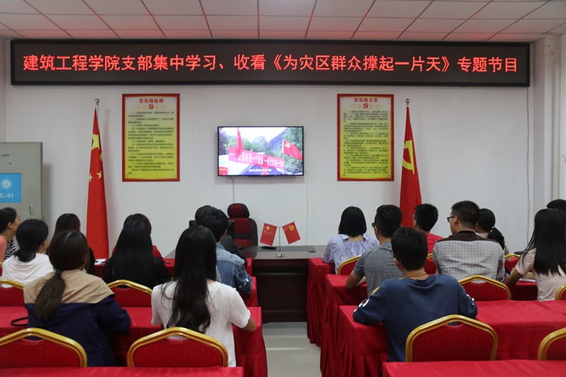 9月29日、30日,機關(guān)一支部、建筑工程學(xué)院支部、交通學(xué)院支部率先組織黨員干部、入黨積極分子在黨建活動室集中學(xué)習(xí)收看《榜樣》、《山谷中挺起不倒的脊梁》、《為災(zāi)區(qū)群眾撐起一片天》三部黨員教育專題片。