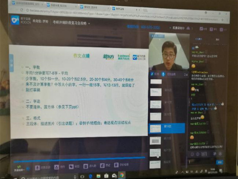11月23日,新東方考研沖刺階段復(fù)習(xí)全攻略直播課程在學(xué)校鐘靈樓進(jìn)行。新東方考研全程規(guī)劃講師吳博衍擔(dān)任主講教師。