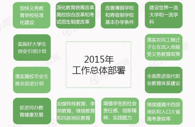 發(fā)展更高質(zhì)量更加公平的教育。教育承載著國家的未來、人民的期盼。公共教育投入要加大向中西部和邊遠(yuǎn)、貧困地區(qū)傾斜力度。統(tǒng)一城鄉(xiāng)義務(wù)教育經(jīng)費保障機制,改善薄弱學(xué)校和寄宿制學(xué)校辦學(xué)條件。鼓勵普惠性幼兒園發(fā)展。辦好特殊教育。大力發(fā)展現(xiàn)代職業(yè)教育,分類推進(jìn)中等職業(yè)教育免除學(xué)雜費。對貧困家庭學(xué)生率先免除普通高中學(xué)雜費。落實提高鄉(xiāng)村教師待遇政策。加快推進(jìn)遠(yuǎn)程教育,擴大優(yōu)質(zhì)教育資源覆蓋面。提升高校教學(xué)水平和創(chuàng)新能力,推動具備條件的普通本科高校向應(yīng)用型轉(zhuǎn)變。繼續(xù)擴大重點高校面向貧困地區(qū)農(nóng)村招生規(guī)模,落實和完善農(nóng)民工隨遷子女在當(dāng)?shù)鼐蛯W(xué)和升學(xué)考試政策。支持和規(guī)范民辦教育發(fā)展。從家庭到學(xué)校、從政府到社會,都要為孩子們的安全健康、成長成才擔(dān)起責(zé)任,共同托起明天的希望。