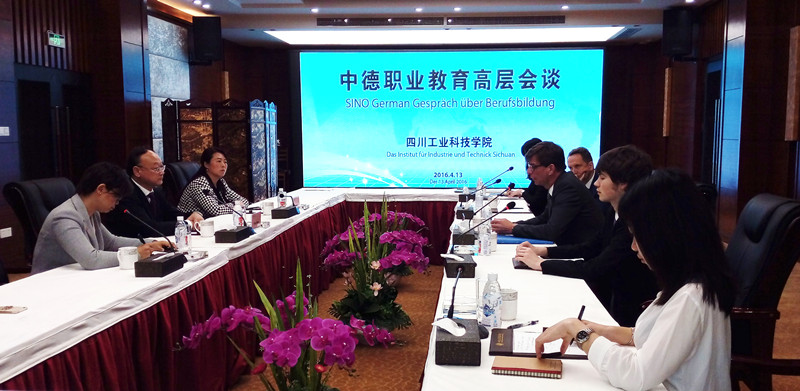 4月13日下午,作為“創(chuàng)新德陽”——中國制造2025對(duì)話德國工業(yè)4.0大會(huì)系列會(huì)議之一的中德職業(yè)教育合作高層會(huì)談在學(xué)校國際會(huì)議中心舉行。黨委書記、校長(zhǎng)唐健禾分別與菲舍爾公司迪特馬爾·胡貝爾、尤莉亞·俄凱、德國萊比錫工商聯(lián)合會(huì)總裁托馬斯·霍夫曼,就中德職業(yè)教育合作與前景、校企合作等內(nèi)容進(jìn)行了兩場(chǎng)會(huì)談,并參觀了交通學(xué)院汽車實(shí)訓(xùn)中心。