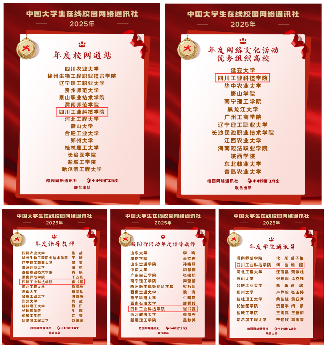 12月25日,教育部中國(guó)大學(xué)生在線公布2025年度表彰名單,學(xué)校榮獲“年度校網(wǎng)通站”“年度網(wǎng)絡(luò)文化活動(dòng)優(yōu)秀組織高?!?,黨委宣傳部崔書磊老師榮獲“校網(wǎng)通站年度指導(dǎo)教師”“校園行活動(dòng)年度指導(dǎo)教師”,何佳、賴媛同學(xué)榮獲“年度學(xué)生通訊員”稱號(hào)。