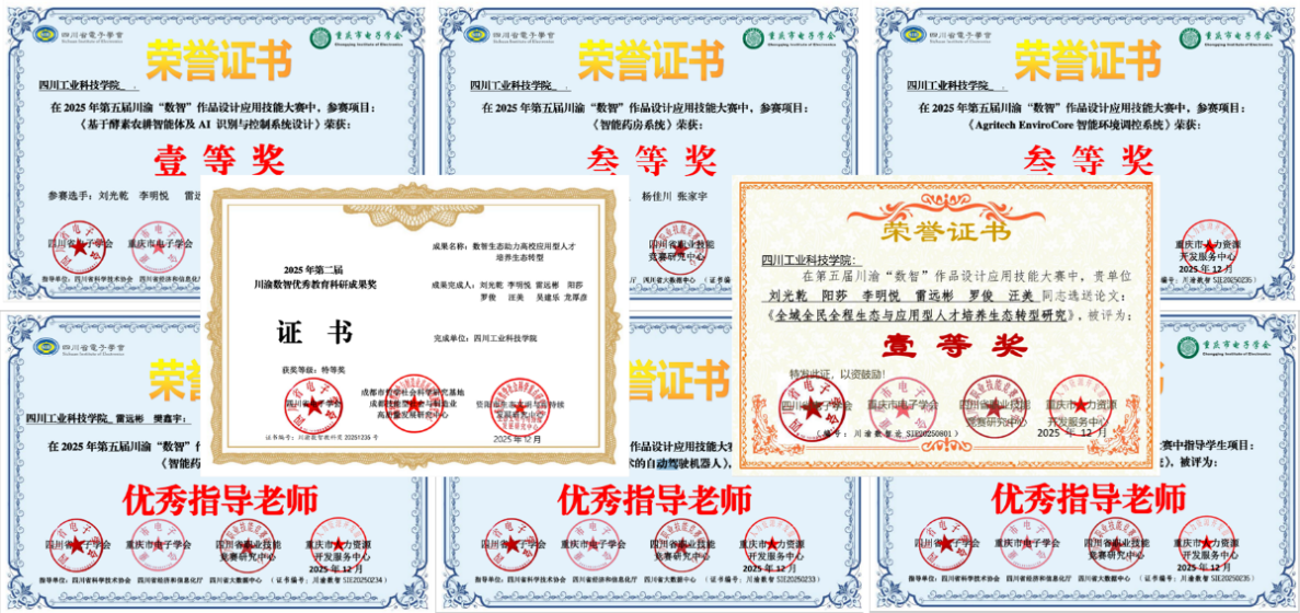 近日,2025年第五屆川渝“數(shù)智”作品設(shè)計應(yīng)用技能大賽結(jié)果揭曉。學校師生團隊在本屆賽事中表現(xiàn)優(yōu)異,共榮獲特等獎、一等獎、三等獎等多個獎項,六位教師獲評“優(yōu)秀指導老師”。參賽作品及科研成果充分彰顯了學校在應(yīng)用型人才培養(yǎng)與“數(shù)智”技術(shù)創(chuàng)新領(lǐng)域的深厚積累與實踐成效。