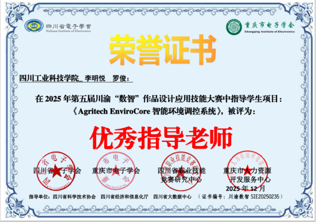 在參賽作品方面,學校選送的項目獲得評委高度評價。其中,由劉光乾、李明悅、雷遠彬等教師完成的《基于酵素農(nóng)耕智能體及AI識別與控制系統(tǒng)設(shè)計》項目榮獲大賽一等獎。該項目聚焦智慧農(nóng)業(yè),融合人工智能與環(huán)境調(diào)控技術(shù),具備較強的創(chuàng)新性與應(yīng)用價值。