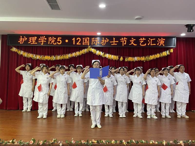 最后,院長助理陳靜帶領(lǐng)全體師生進行了莊嚴而神圣的宣誓,晚會的氣氛達到了高潮,全體同學(xué)起立,莊嚴宣誓,鏗鏘有力的宣誓詞展示了學(xué)子們獻身護理事業(yè)的堅定信念與無悔決心。