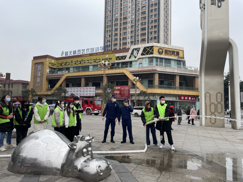 隨后,消防救援大隊(duì)的消防人員介紹了常規(guī)消防設(shè)施的使用,并現(xiàn)場(chǎng)演示了報(bào)警器、滅火器、水栓的正確使用方法。讓大家對(duì)消防知識(shí)有了更直觀的了解。采取現(xiàn)場(chǎng)展示與觀看視頻相結(jié)合的方式,使消防知識(shí)更加生動(dòng)形象。同學(xué)們?cè)谙廊藛T的帶領(lǐng)下深入到社區(qū),為居民發(fā)放傳單,宣講消防安全知識(shí)。