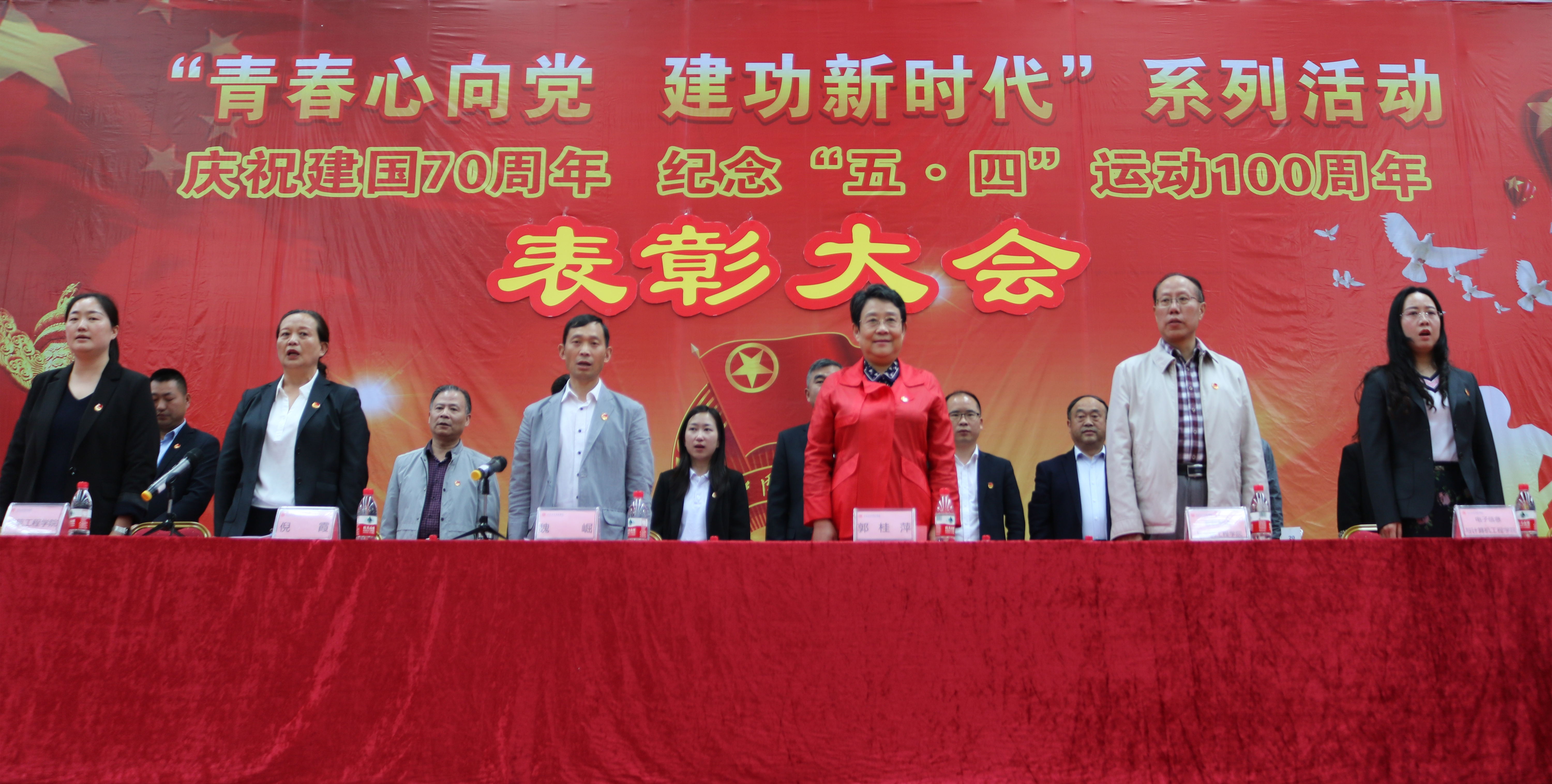 為慶祝建國(guó)70周年暨紀(jì)念五四運(yùn)動(dòng)100周年,弘揚(yáng)五四精神。5月8日下午,我校在體育館成功舉行了“五·四”運(yùn)動(dòng)100周年表彰大會(huì)。黨委書(shū)記魏崛、黨委副書(shū)記倪霞、副校長(zhǎng)郭桂萍、各職能部門(mén)負(fù)責(zé)人及各二級(jí)學(xué)院主要領(lǐng)導(dǎo)出席了本次會(huì)議。青年教師代表及各二級(jí)學(xué)院學(xué)生代表到場(chǎng)觀看了表彰大會(huì)。大會(huì)由倪霞主持。