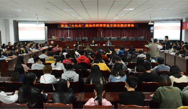 今天下午18:00,四川工業(yè)科技學(xué)院學(xué)習(xí)“十九大”-------做當(dāng)代優(yōu)秀學(xué)生干部主題分享會在我校圖書館D-408順利召開。學(xué)校黨委書記、校長唐健禾教授、學(xué)工部副部長胡亮、團委副書記曾曉莉出席會議,校學(xué)生會全體成員及各二級學(xué)院學(xué)生干部代表到場參與,大會由胡亮主持。在簡短的開場白后,14名學(xué)生干部代表競相發(fā)言,一一闡述了自己對“十九大”會議精神的見解,并表示將在今后的學(xué)習(xí)與工作中,起到良好的帶頭作用,為我校團學(xué)建設(shè)貢獻(xiàn)更多的力量。