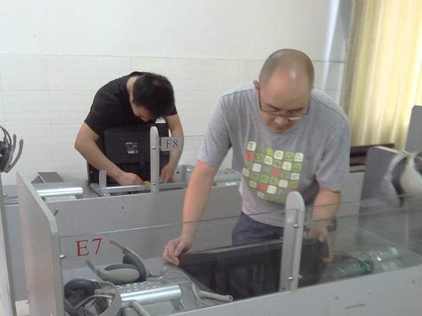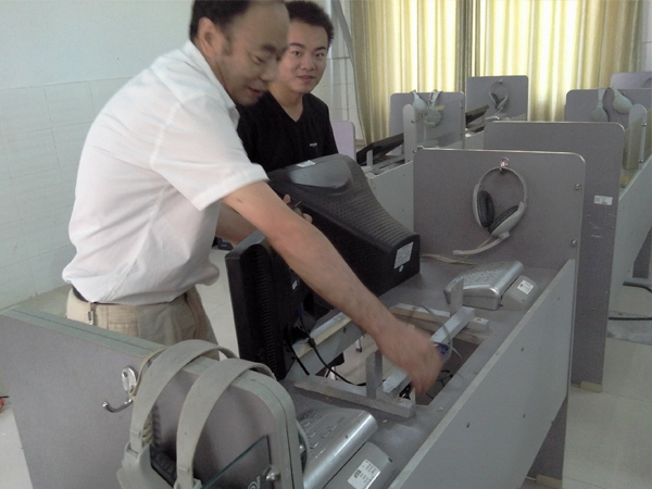 在主管校領(lǐng)導(dǎo)的指導(dǎo)下,在計(jì)財(cái)處的支持協(xié)調(diào)下,在后勤管理處的積極配合下,我中心工作人員于8月4日、5日、6日冒著酷暑首先對鐘靈樓電教室的木制講臺、語音室桌面進(jìn)行了改造,隨后中心人員全員出動(dòng)迅速更換、安裝顯示器,并對每臺新安裝的顯示器進(jìn)行了調(diào)試,達(dá)到了教學(xué)使用要求。