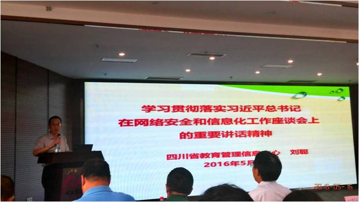 隨后,四川省教育廳信息中心主任劉聰對2016年上半年全省高校網(wǎng)站高危安全情況進行了通報,并對四川省高校“十三五”及2016年度的一些重點工作進行了分析、梳理,要求進一步提高意識,加強領(lǐng)導和健全責任體系,落實等保,統(tǒng)一安全審計平臺,提高信息安全和網(wǎng)絡防護能力。
