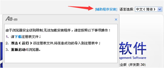 加載項安裝完成后,選擇輔助程序安裝,并下載注冊表文件;