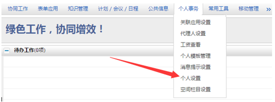三、進入系統(tǒng)后,請務必更改密碼,建議將密碼與我校官網(wǎng)數(shù)字化校園登陸密碼設置為一致,進系統(tǒng)后選擇個人事務里面的個人設置修改密碼。