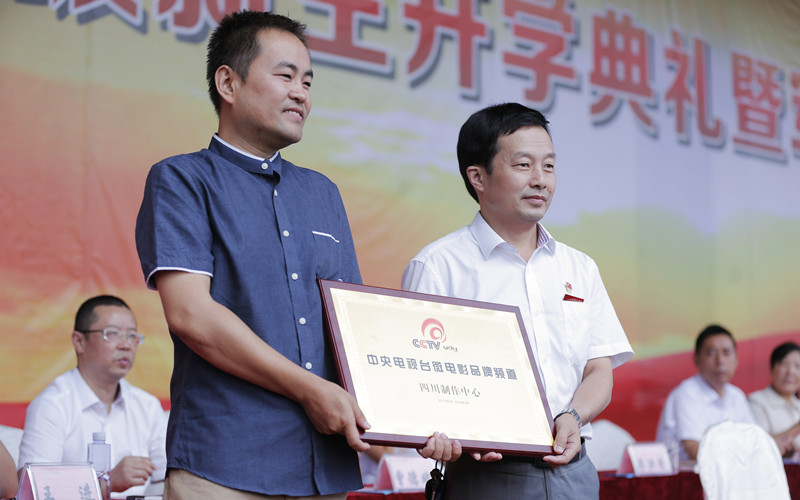 在全校師生的共同見證下,中央電視臺微電影頻道總監(jiān)任振鑫向?qū)W校授牌,建立四川省唯一一個央視微電影頻道四川制作中心,旨在充分發(fā)揮央視的品牌效應(yīng)及優(yōu)勢資源,在新媒體環(huán)境下展示我校的辦學(xué)成果和特色,并且通過深度融合,使之成為師生增強實踐能力的平臺。